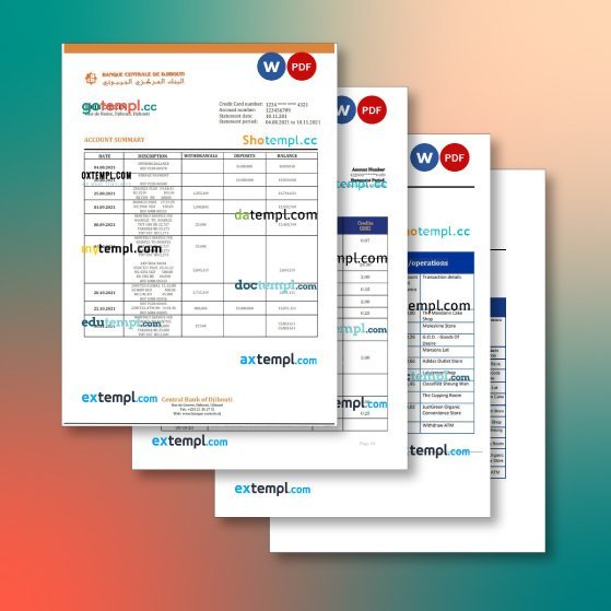 Djibouti bank statement 4 templates in one collection – with price cut