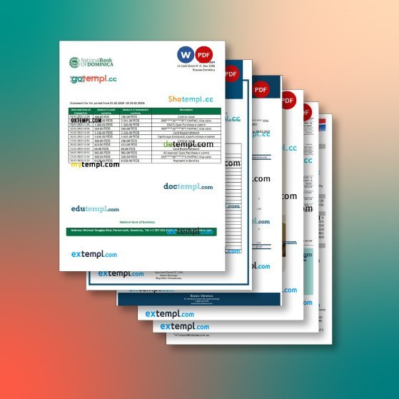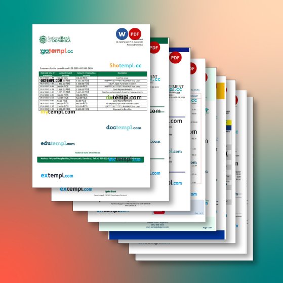 Dominica bank statement 6 templates in one file – with a sale price