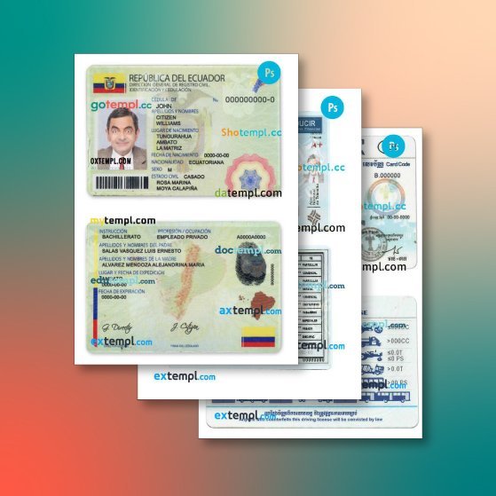 Ecuador identity document 3 templates in one file – with a sale price