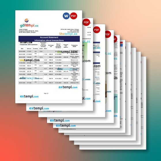 Ethiopia bank statement 10 templates in one archive – with takeaway price