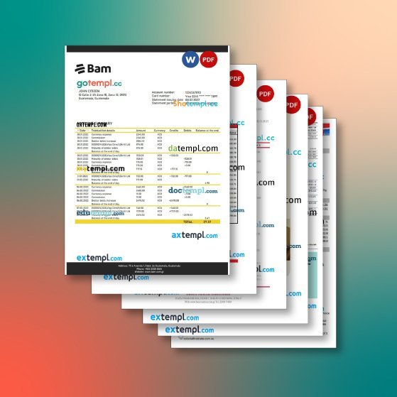 Guatemala bank statement 6 templates in one archive – with takeaway price