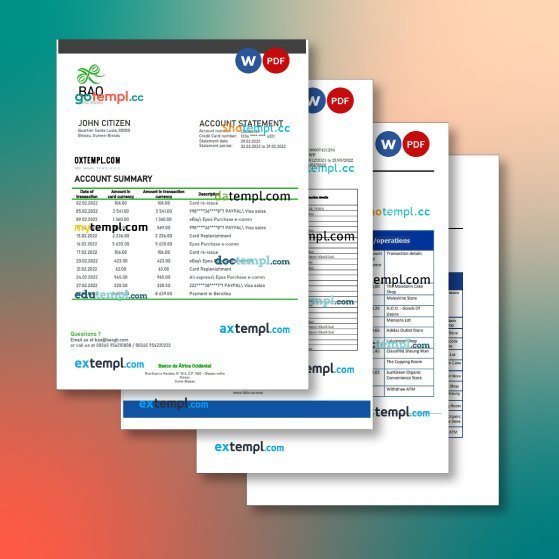 Guinea-Bissau bank statement 4 templates in one record – with discount price