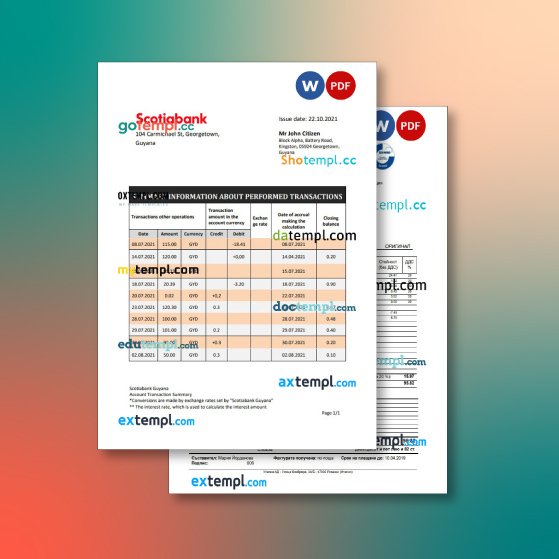 Guyana bank statement 2 templates in one archive – with takeaway price