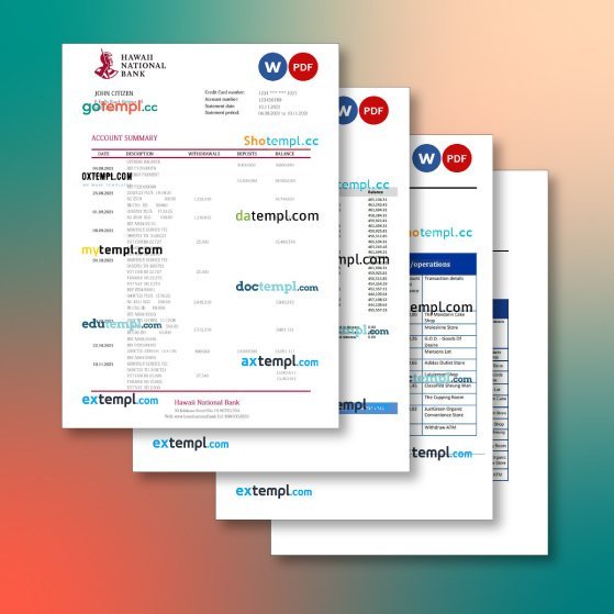 Hawaii bank statement 4 templates in one catalogue – with lower price