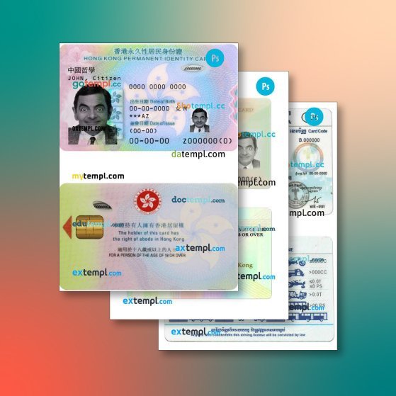 Hong Kong identity document 3 templates in one catalogue – with lower price