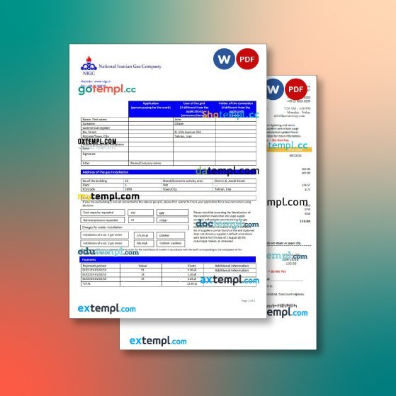 Iran utility bill 2 templates in one file – with a sale price