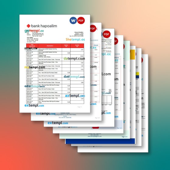 Israel bank statement 8 templates in one archive – with takeaway price