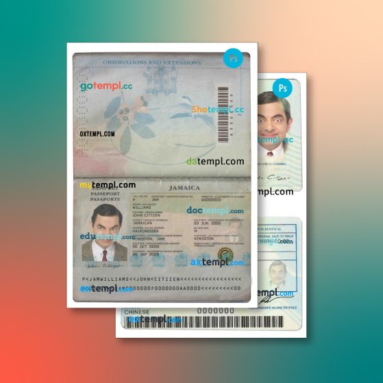 Jamaica identity document 2 templates in one archive – with takeaway price