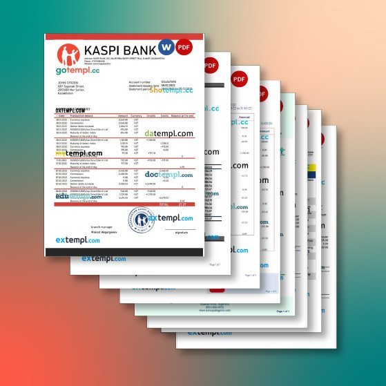 Kazakhstan bank statement 9 templates in one archive – with takeaway price