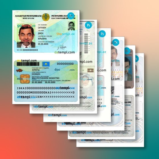 Kazakhstan identity document 6 templates in one file – with a sale price