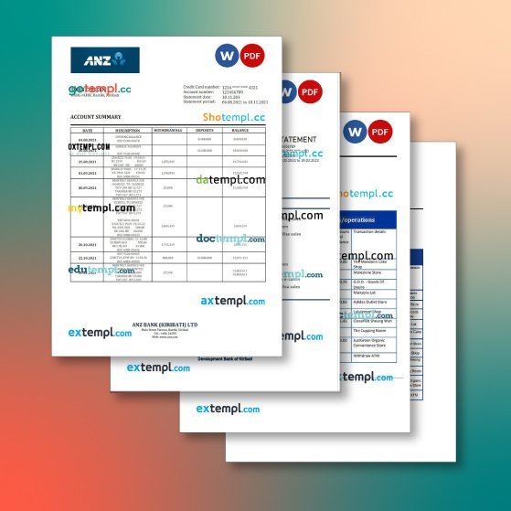 Kiribati bank statement 4 templates in one archive – with takeaway price