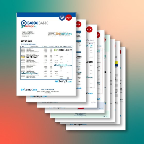 Kyrgyzstan bank statement 8 templates in one record – with discount price
