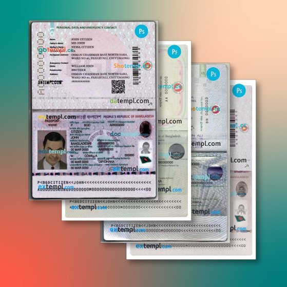 Bangladesh passport 4 templates in one record – with discount price