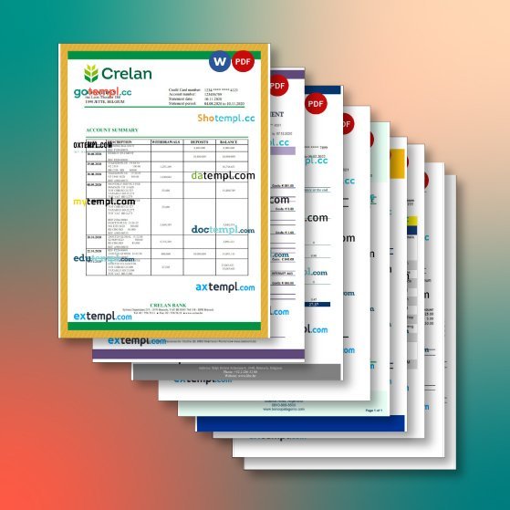 Belgium bank statement 9 templates in one record – with discount price