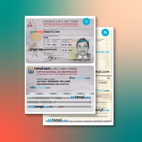 Cabo Verde identity document 2 templates in one archive – with takeaway price