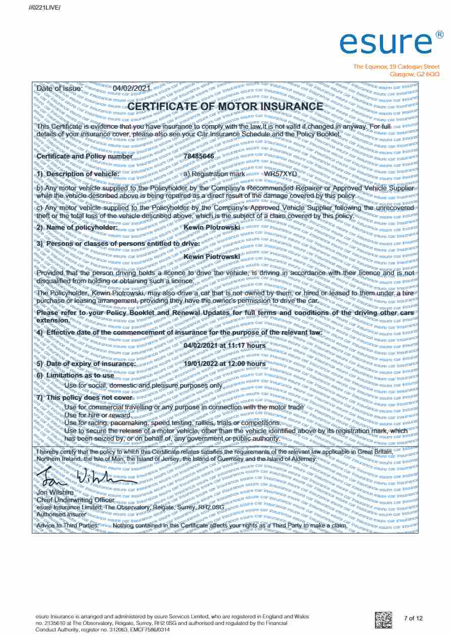 Antilo UK LTD certificate of motor insurance Word and PDF download template fully editable