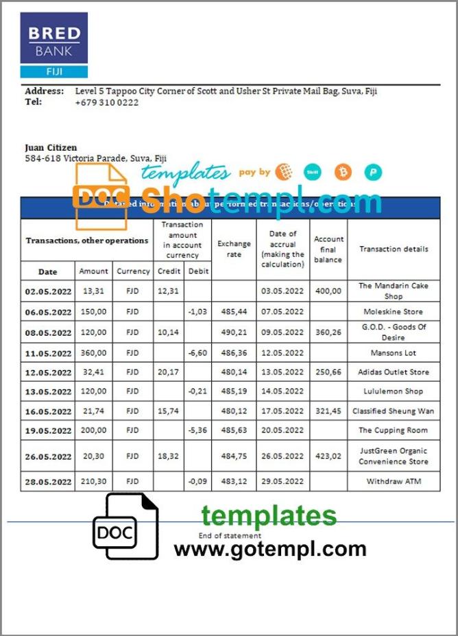 GB: Fijian Fijianan bank statement 3 – 6 months microsoft excel spreadsheets worksheet data xls xlsx file formulas sums calculate automatically electronic tables sheets column columns kyc proof address verify verification fake printable real blank paper energy gaz gas water electric pdf psd example monthly billing payment receipt bills free download 2020 2021 2022