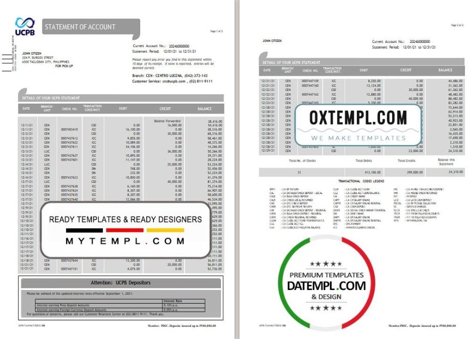 Completely editable UCPB bank statement 3 – 6 months of account example of high quality, which is a proof of the available balance from the bank.