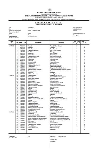 Fully editable sample of official academic transcript of records in Word and PDF formats – easy to fill.