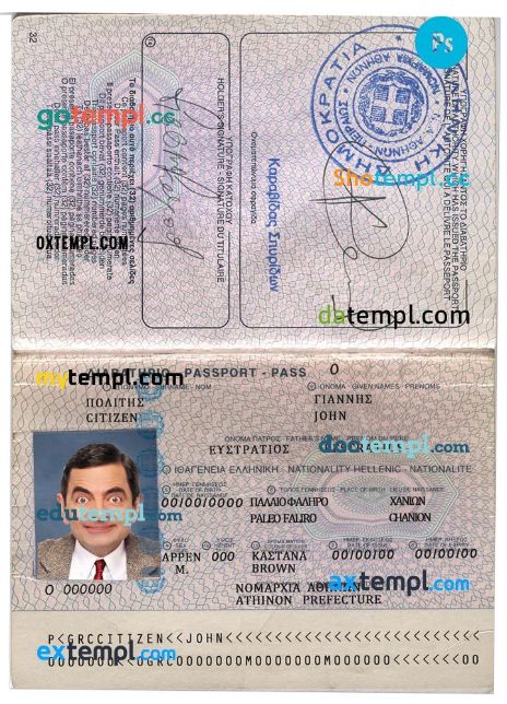 Greece passport template two in one with editable PSD photo taken image. This template is fully customizable and compatible with Adobe Photoshop.
