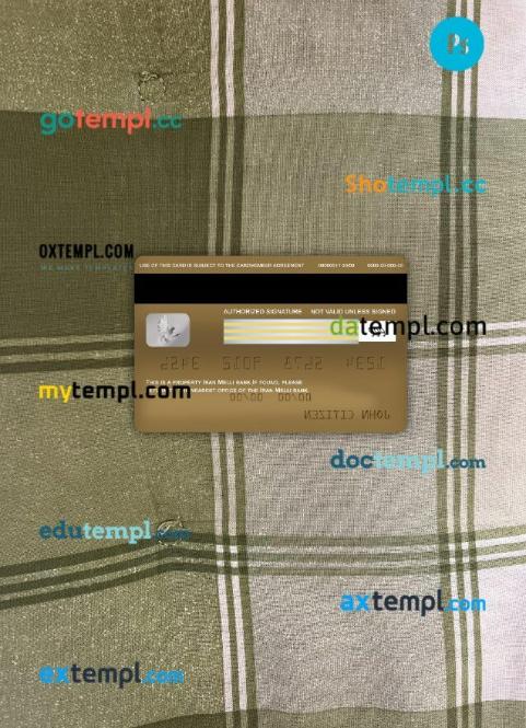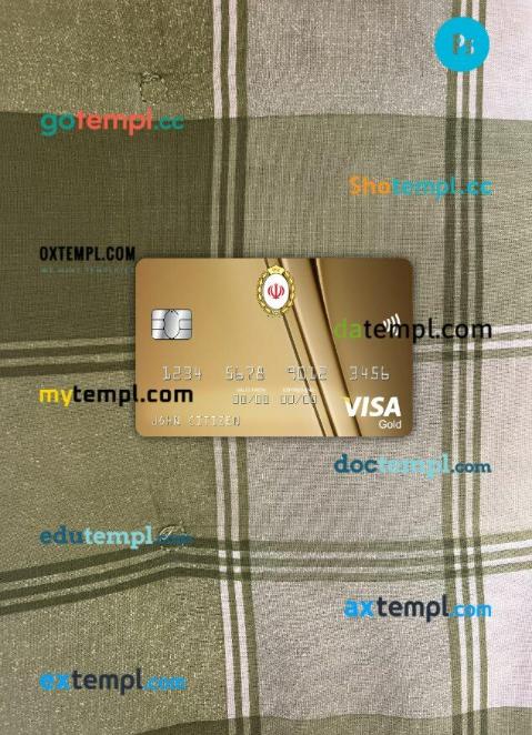 Iran Melli Bank visa gold card PSD scan and photo-realistic snapshot, 2 in 1