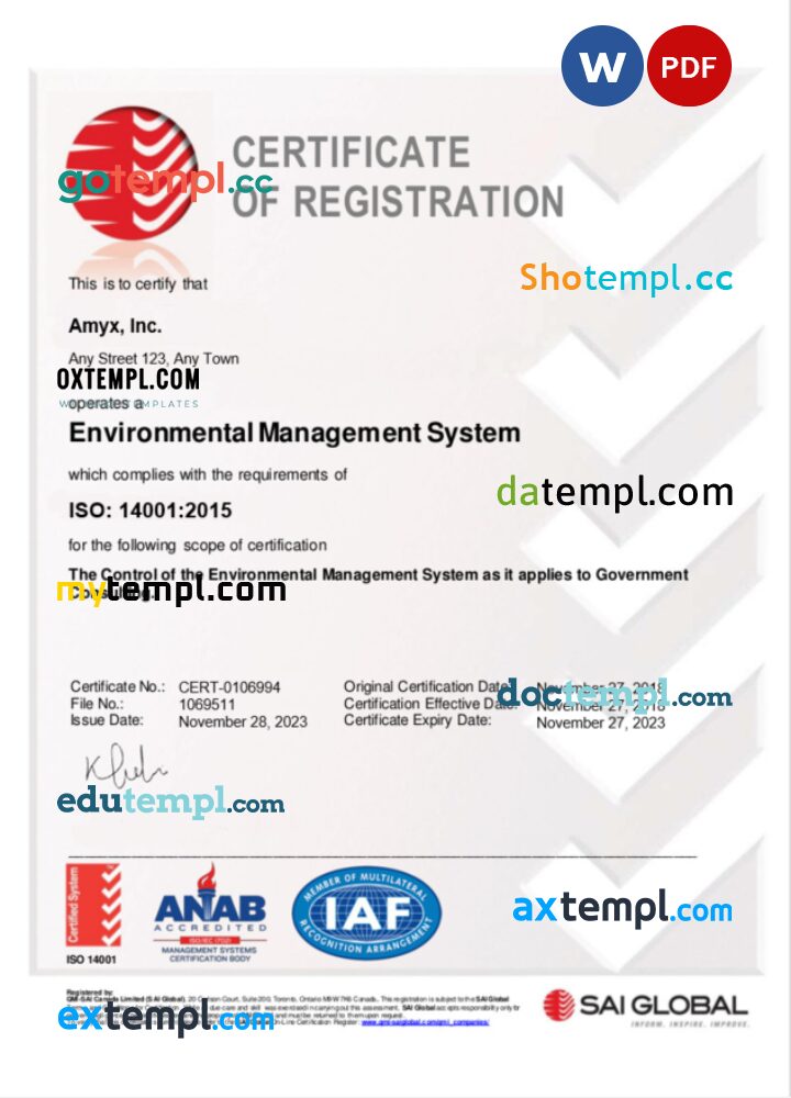 Italy certificate of registration Word and PDF template