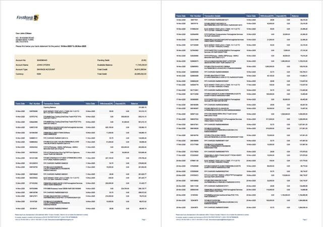 Like all our documents, this Nigeria First Bank account statement example is of high quality, which may be used as a proof of address in many sites.