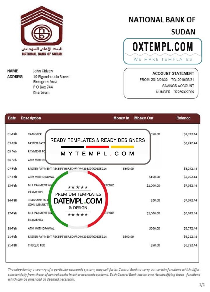 Completely editable Sudanese National Bank of Sudanese bank statement 3 – 6 months of high quality, which may be used as a proof of address in many sites.