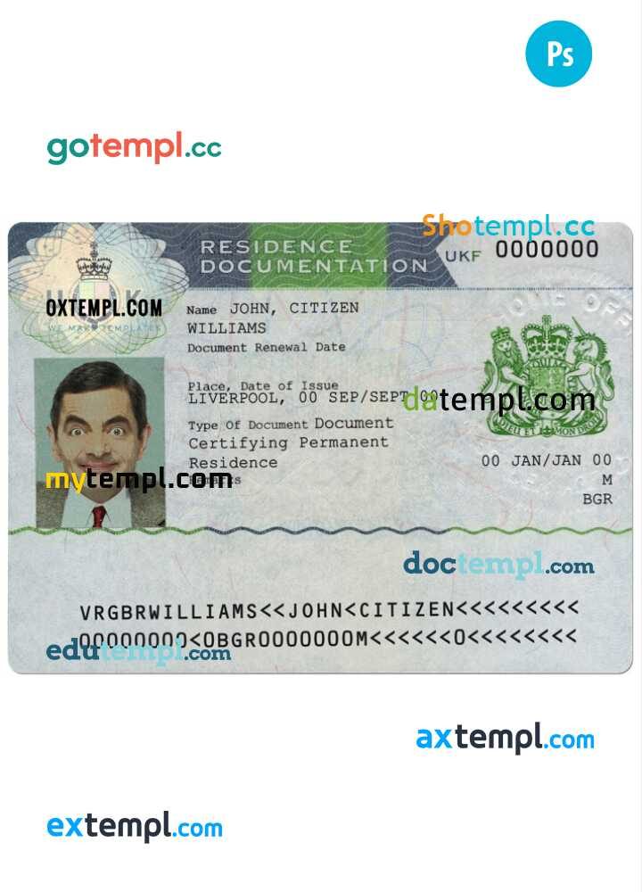 Completely editable Taiwan resident permit example in PSD format.