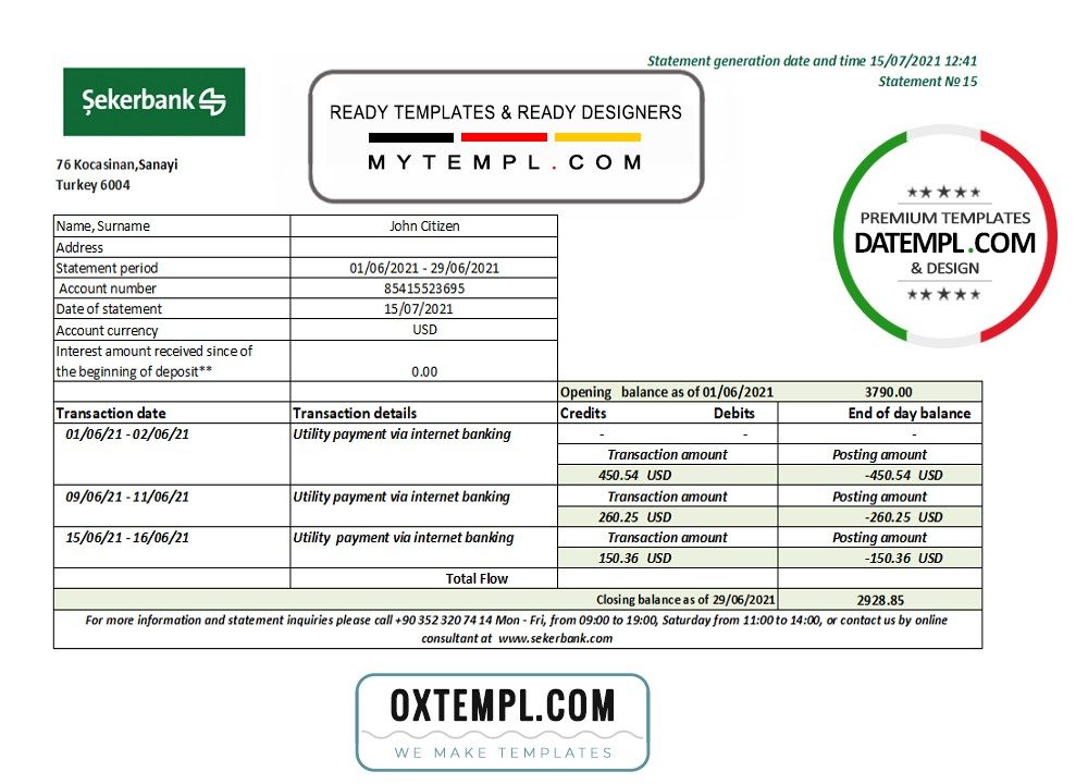 GB: turkey bank statement 3 – 6 months microsoft excel spreadsheets worksheet data xls xlsx files formulas sums calculated automatically electronic spreadsheets sheets columns columns kyc proof address verification verification fake print real blank paper energy gas gas water electric pdf psd example monthly billing bills free download 2020 2021 2022