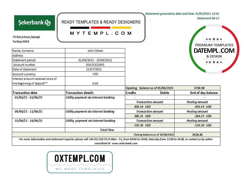 GB: turkey bank statement 3 – 6 months microsoft excel spreadsheets worksheet data xls xlsx files formulas sums calculated automatically electronic spreadsheets sheets columns columns kyc proof address verification verification fake print real blank paper energy gas gas water electric pdf psd example monthly billing bills free download 2020 2021 2022