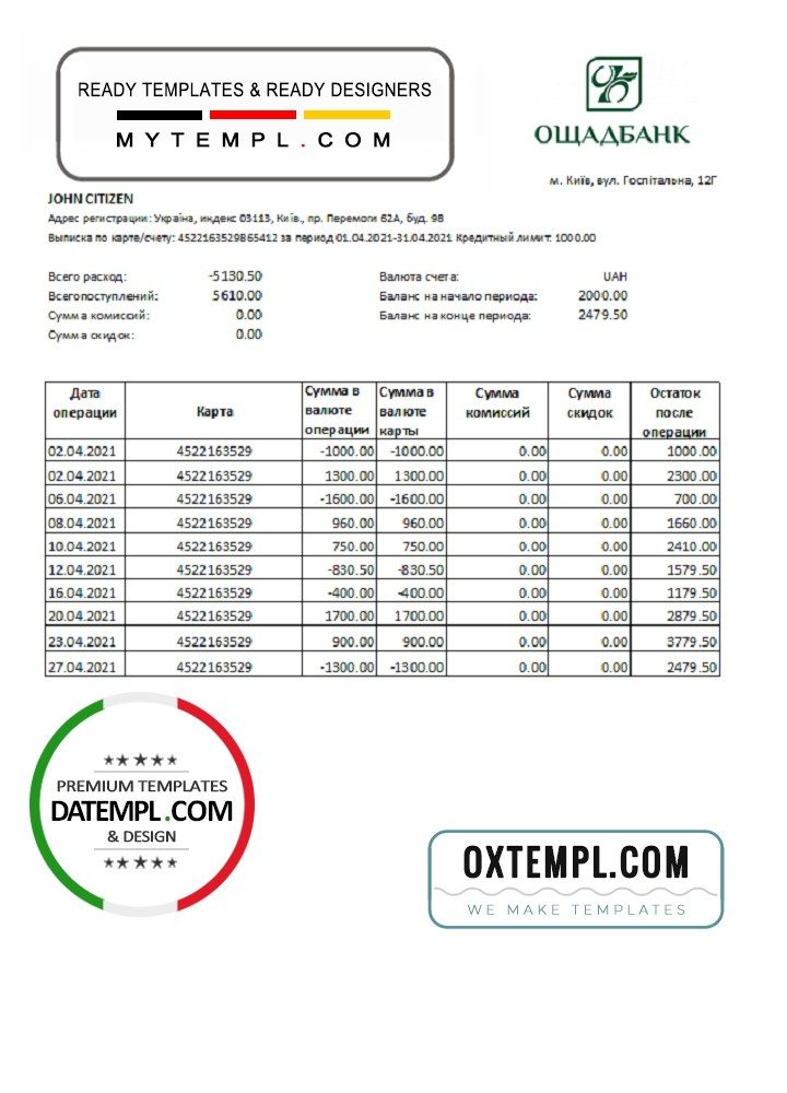 GB: Ukrainian Ukrainian bank statement 3 – 6 months microsoft excel spreadsheets worksheet data xls xlsx file formulas sums calculate automatically electronic tables sheets column columns kyc proof address verify verification fake printable real blank paper energy gaz gas water electric pdf psd example monthly billing payment receipt bills free download 2020 2021 2022