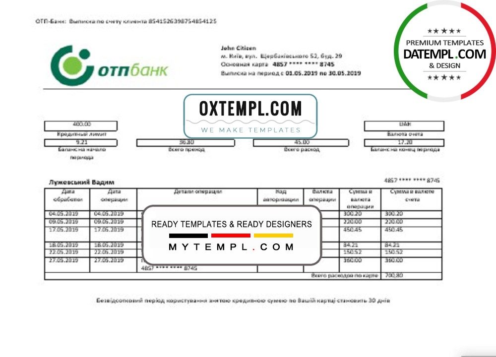 Fully editable example of Ukrainian OTP bank proof of address bank statement 3 – 6 months. The example is in doc format, high-quality and easy to fill.
