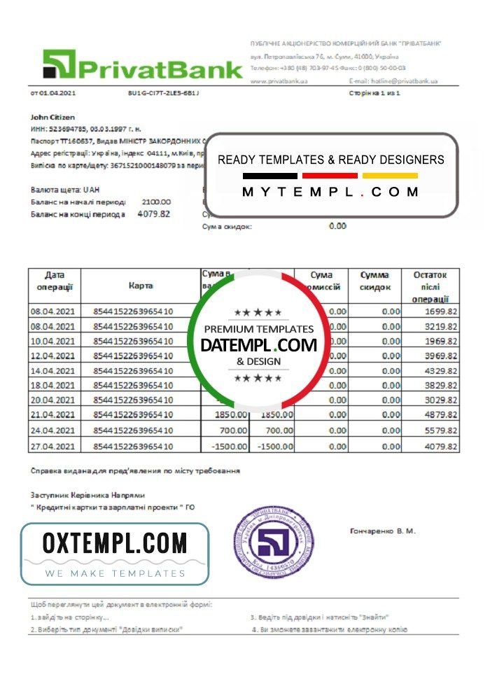 GB: Ukrainian Ukrainian bank statement 3 – 6 months microsoft excel spreadsheets worksheet data xls xlsx file formulas sums calculate automatically electronic tables sheets column columns kyc proof address verify verification fake printable real blank paper energy gaz gas water electric pdf psd example monthly billing payment receipt bills free download 2020 2021 2022