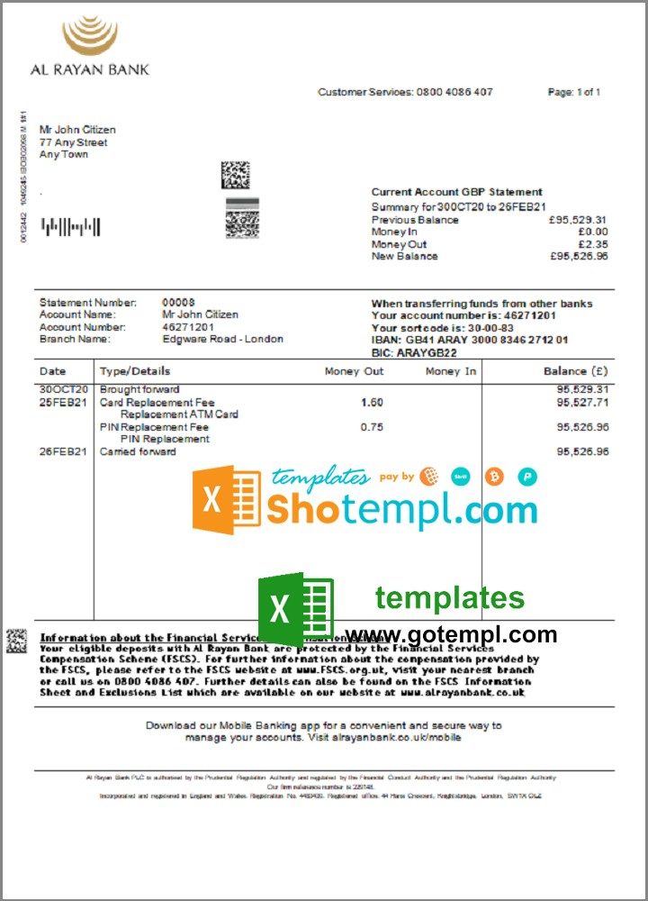 GB: United Kingdom UK British English bank statement 3 – 6 months microsoft excel spreadsheets worksheet data xls xlsx file formulas sums calculate automatically electronic tables sheets column columns kyc proof address verify verification fake printable real blank paper energy gaz gas water electric pdf psd example monthly billing payment receipt bills free download 2020 2021 2022