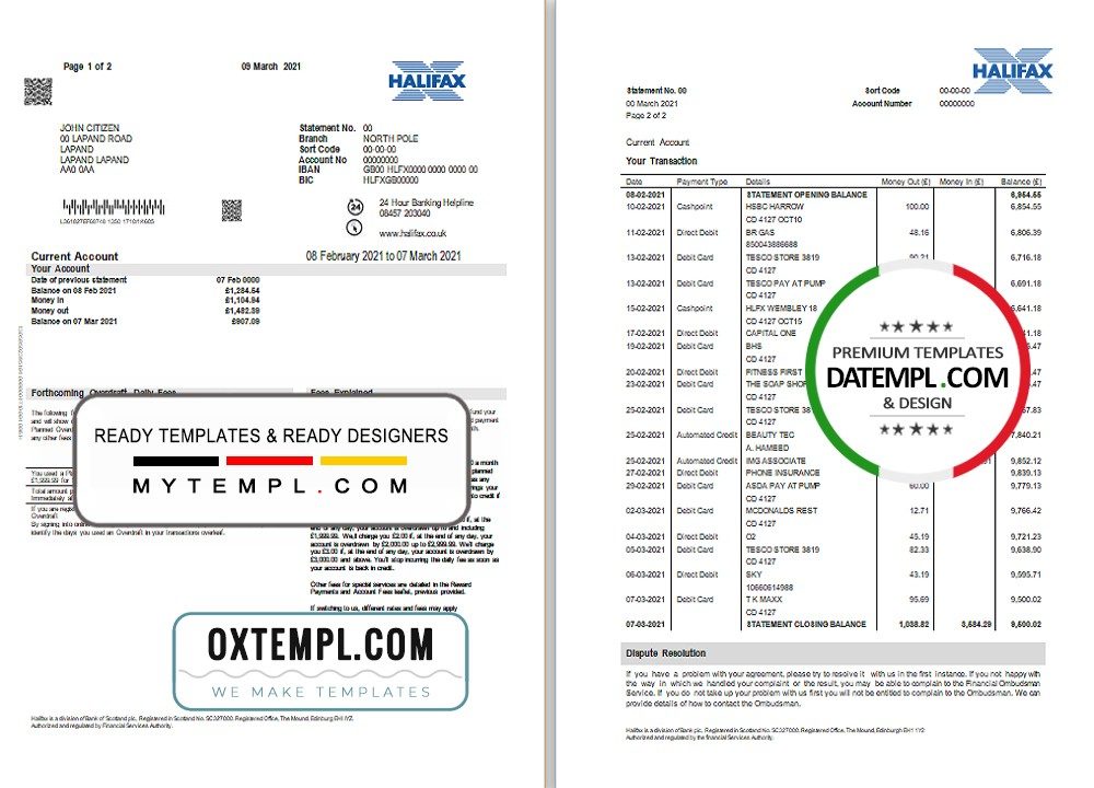 Completely editable United Kingdom Halifax bank statement example of high quality, which may be used as a proof of address in many sites.