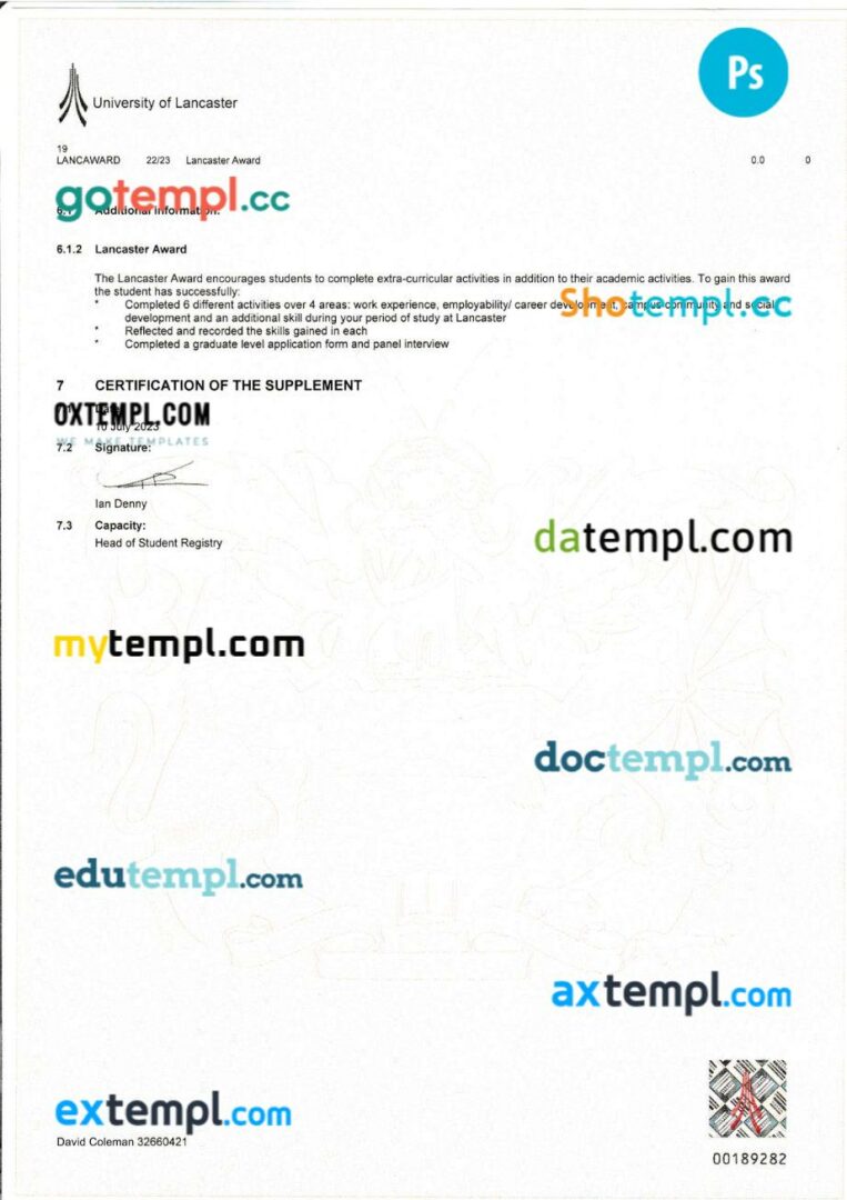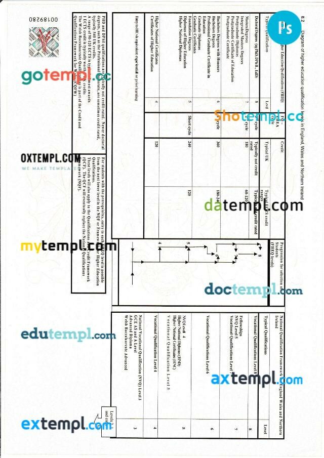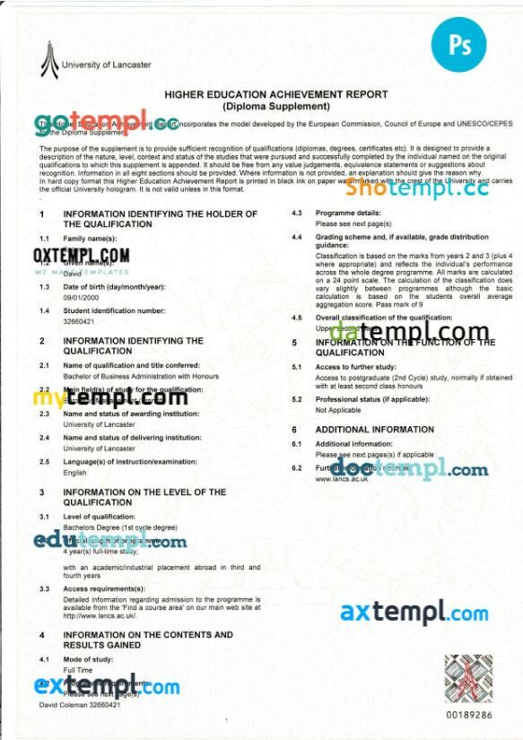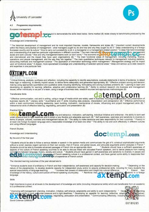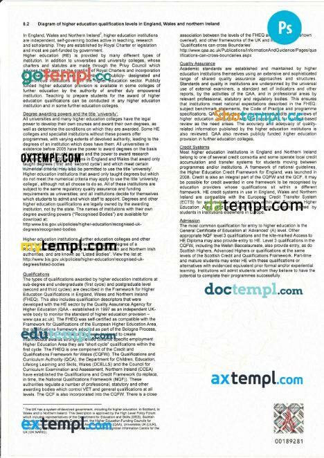 Fully editable sample of official academic transcript of records in PSD format – easy to fill.