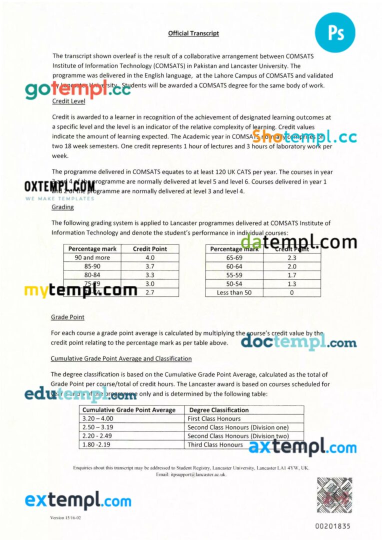 Fully editable sample of official academic transcript of records in PSD format – easy to fill.