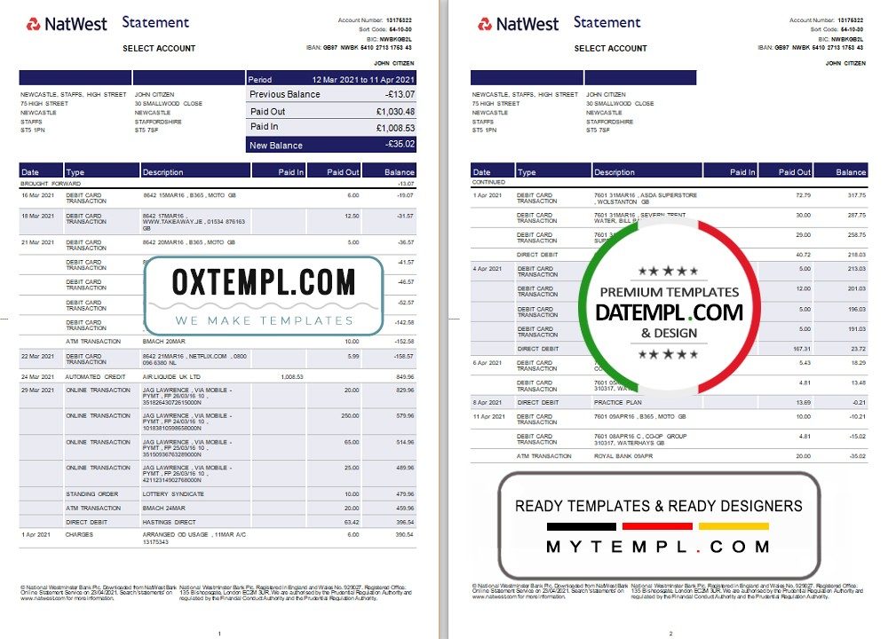 Here you see a bank statement 3 – 6 months sample of British large bank – Natwest.