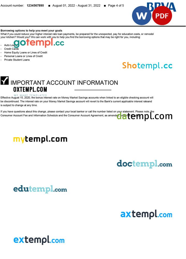 Fully scalable and editable USA BBVA bank statement 3 – 6 months example at the best price – well organized, named & very easy to use.