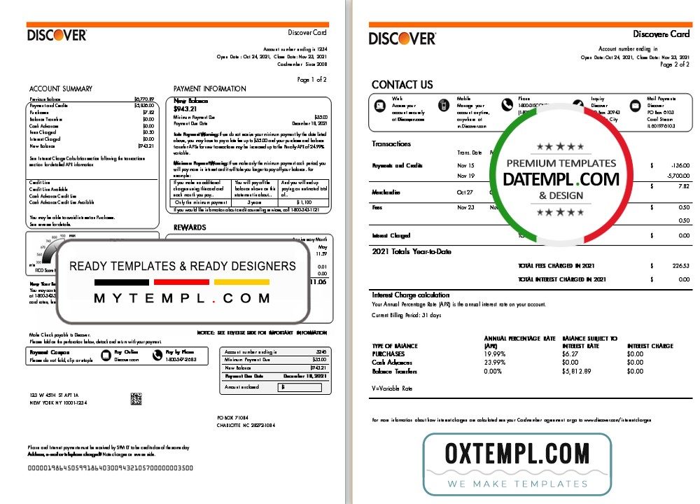 Completely editable USA Discover bank statement 3 – 6 months of high quality, which may be used as a proof of address in many sites.