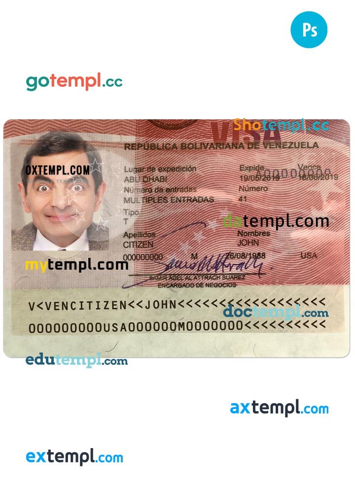 Here you see completely editable, printable Venezuelan ID example in PSD format, which contains the main pages.